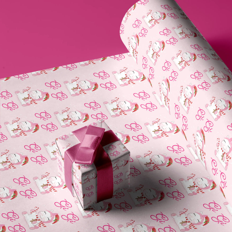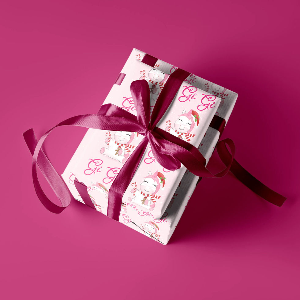 Celebrate Christmas with this festive pink unicorn gift wrap. Add a name to create personalized, eco-friendly holiday magic under the tree.